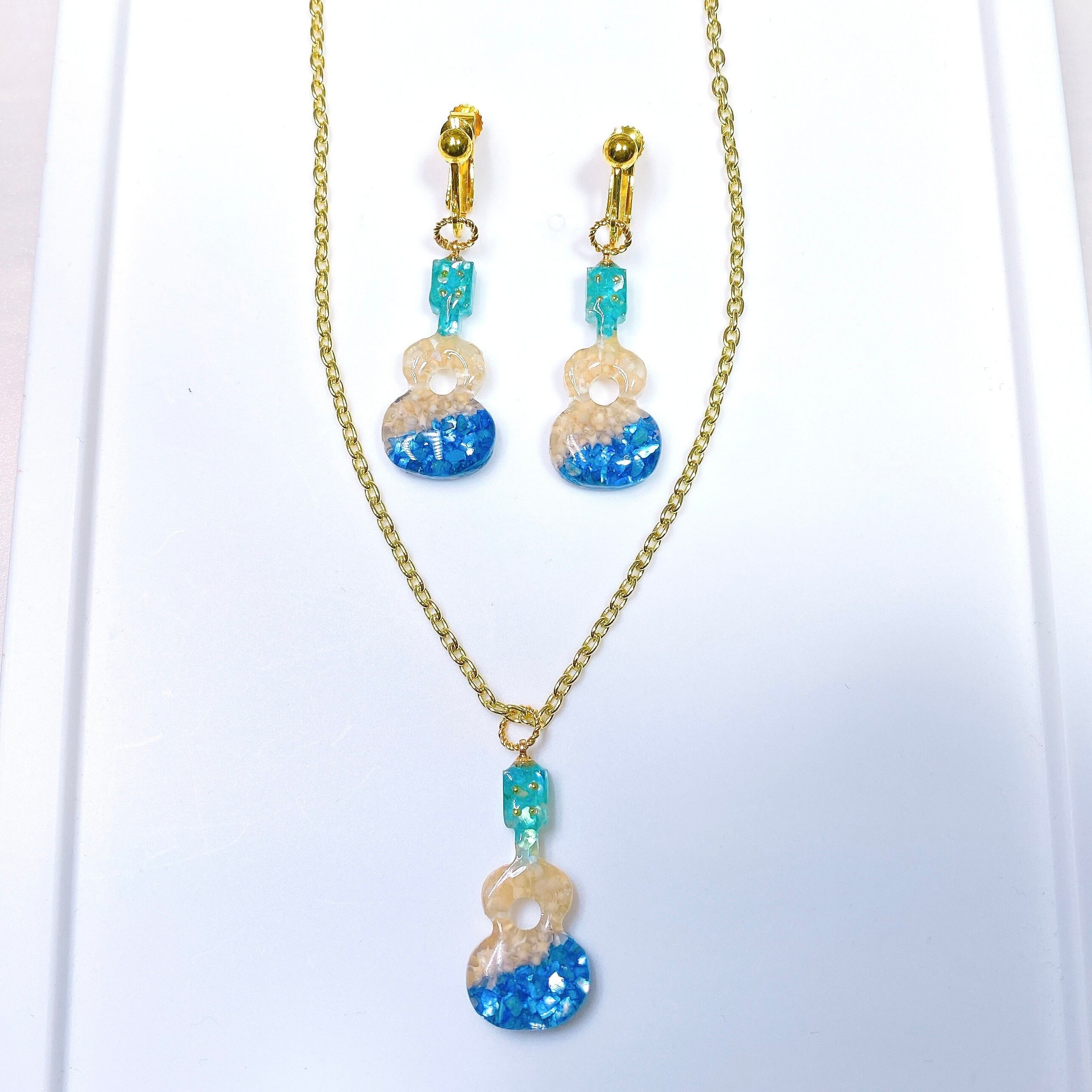 ウクレレ型ネックレス&ピアスセット(orイヤリング)