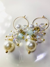 オーロラビーズとブルーストーンビーズが光の加減できらめき、これからの季節にピッタリ♪